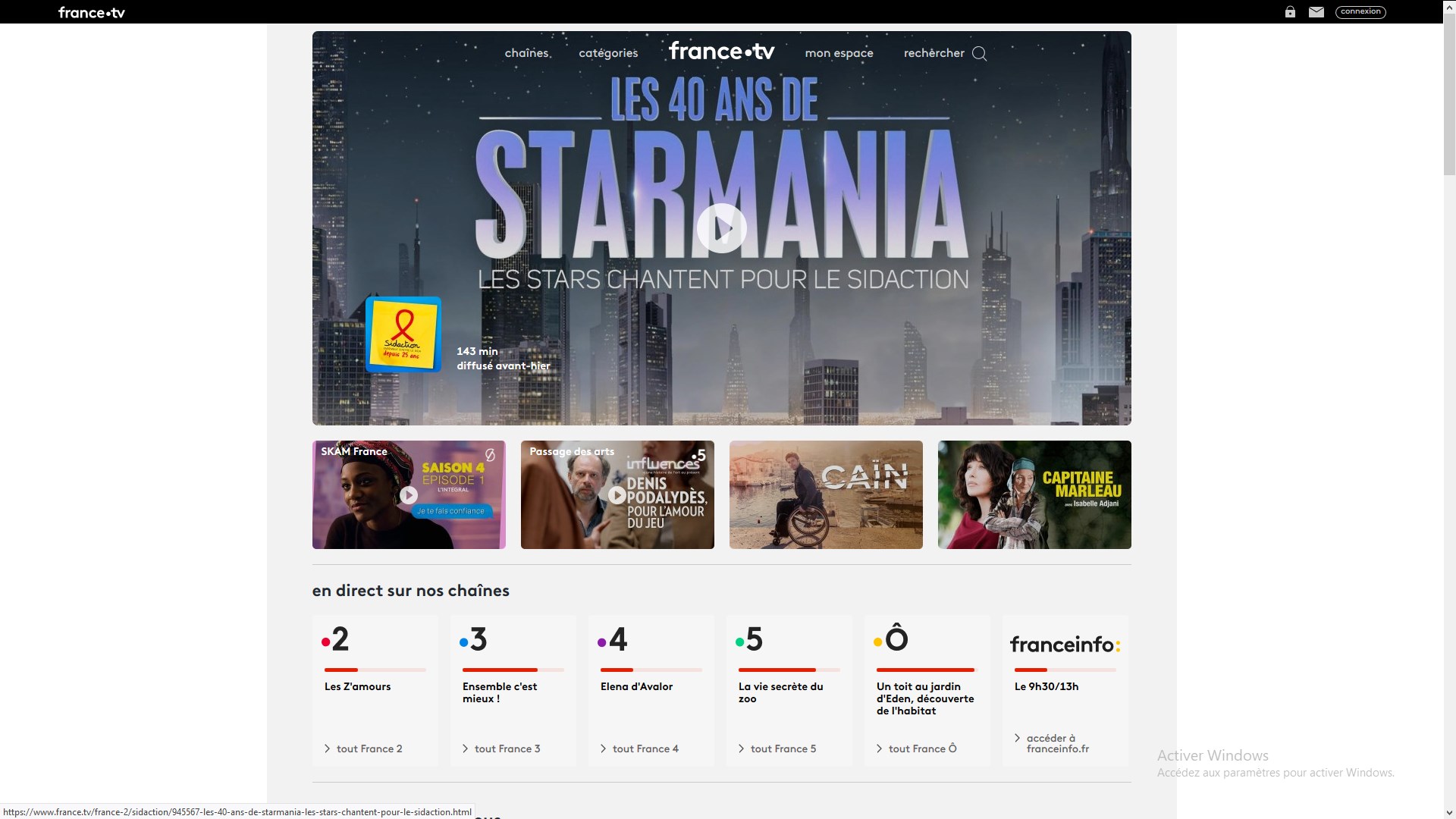 Les chaines TV du service public sont maintenant disponibles en streaming en direct sur internet sur france.tv. Vous y trouverez les chaines france 2, 3, 4, 5, O et franceinfo en diffusion en même temps qu’a la télé. c’est donc un bon plan si vous voulez suivre vos émissions favorites mais que vous n’êtes pas chez vous, en voyage par exemple ou en déplacement par exemple.